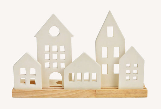 Advent arrangement Huis wit/hout 30x18x10 cm