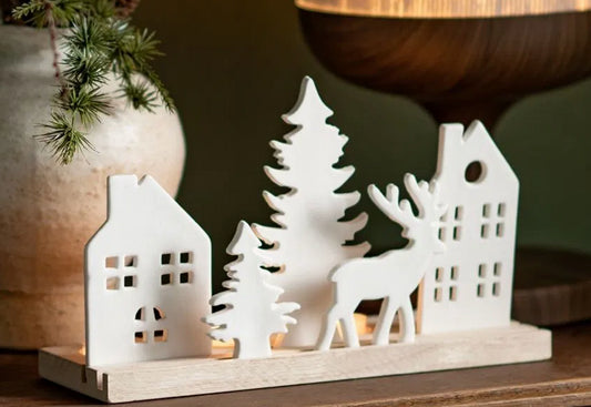 Advent Huis-Boom-Hert wit/hout 30x18x10 cm