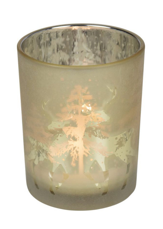 Windlicht Silhouette Dansend hert goud Medium 12 cm