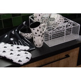 Theedoek 50x70 cm wit zwart Kerstbomen