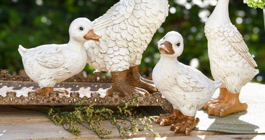 Eend staand wit resina 10x12x17 cm (klein rechts)