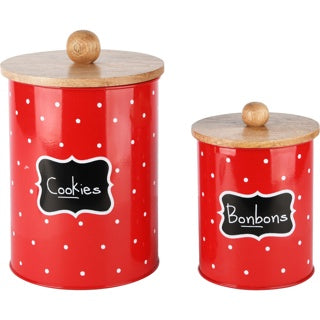 Bewaarpot 'Cookies' & 'Bonbons set rood hout/metaal