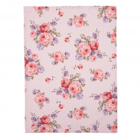 Theedoek 50x70 cm Roze Wit met stippen en bloemen
