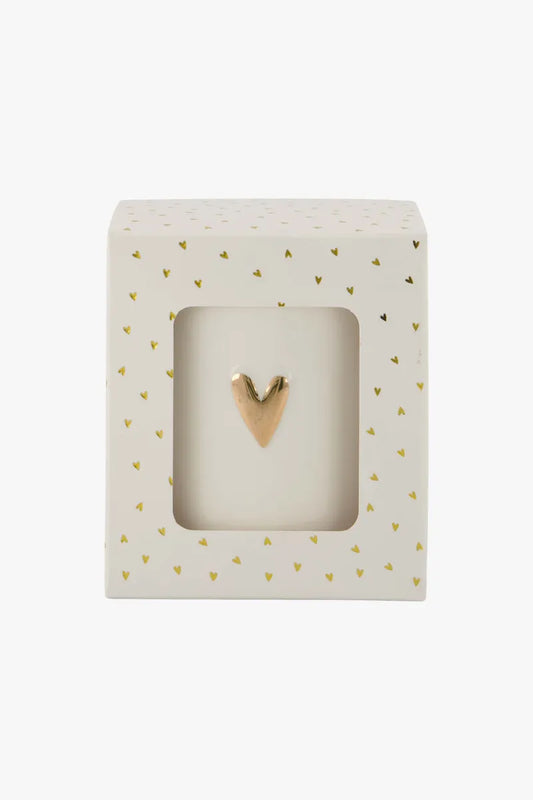 Geurkaars Keramiek in doosje linnen hartje wit