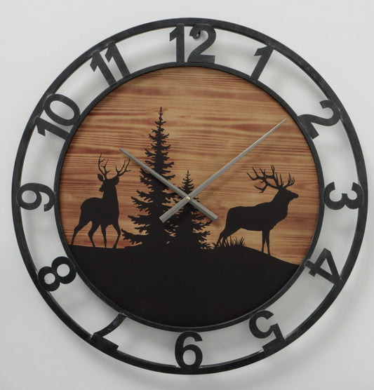 Dekoratief -Wandklok zwart/hout metaal cijfers dia 60 cm
