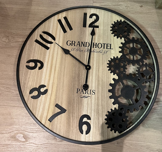 Dekoratief - Wandklok Rond zwart/hout metaal diameter 60 cm