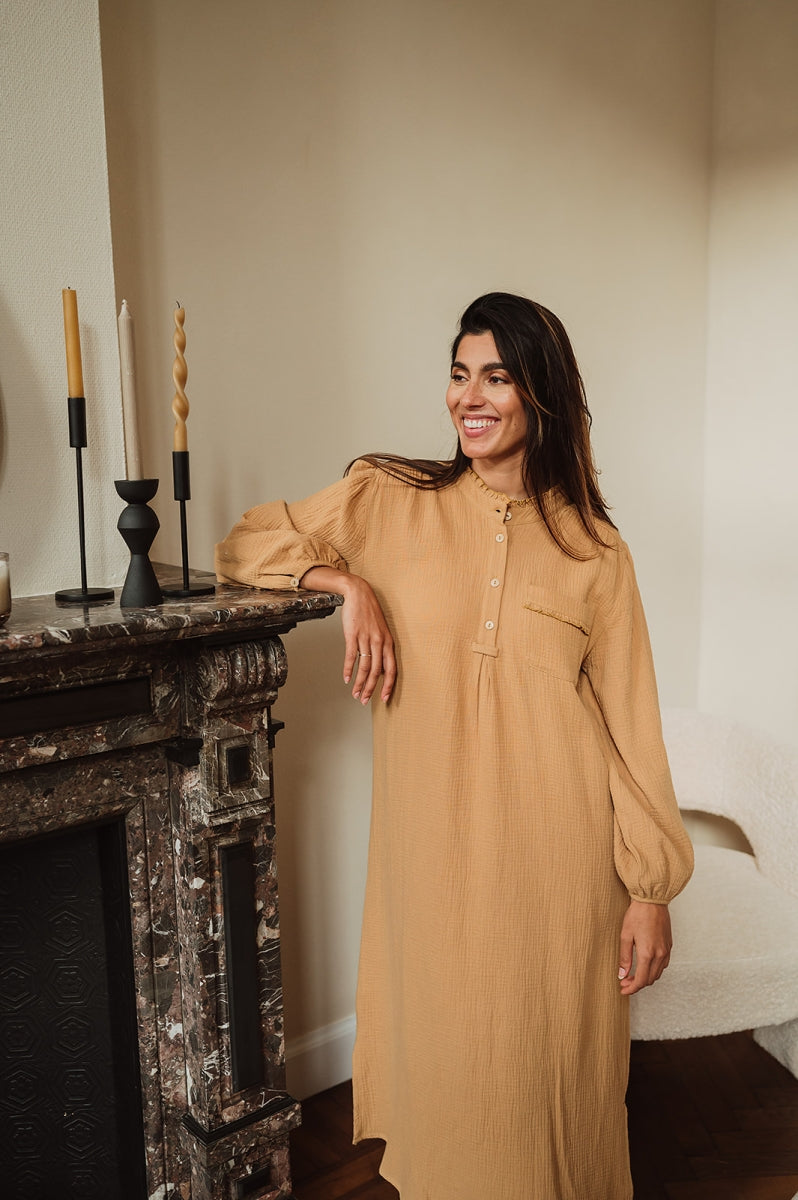 Mooie dames lang nachtkleed lange mouw in bronze