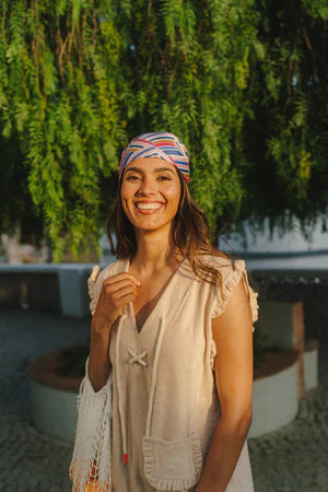 Dit badstof Bardo-thema is ontworpen om te loungen. Dit kledingstuk is gemaakt van ongelooflijk zachte katoenen badstof en is een essentieel kledingstuk. Met zijn tijdloze styling is de Bardo-jurk een klassiek kledingstuk met een flatterende V-halslijn, een opgestikte zak, ons A&M-borduurwerk en fluo-details. Het is geverifieerd door OEKO-TEX® Standard 100, wat betekent dat onze stof wordt verwerkt zonder schadelijke chemicaliën en kleurstoffen in een fabriek die veilige en niet-giftige kleurstoffen gebruikt. Draag hem over je favoriete bikini of badpak en je bent klaar om te ontspannen.
