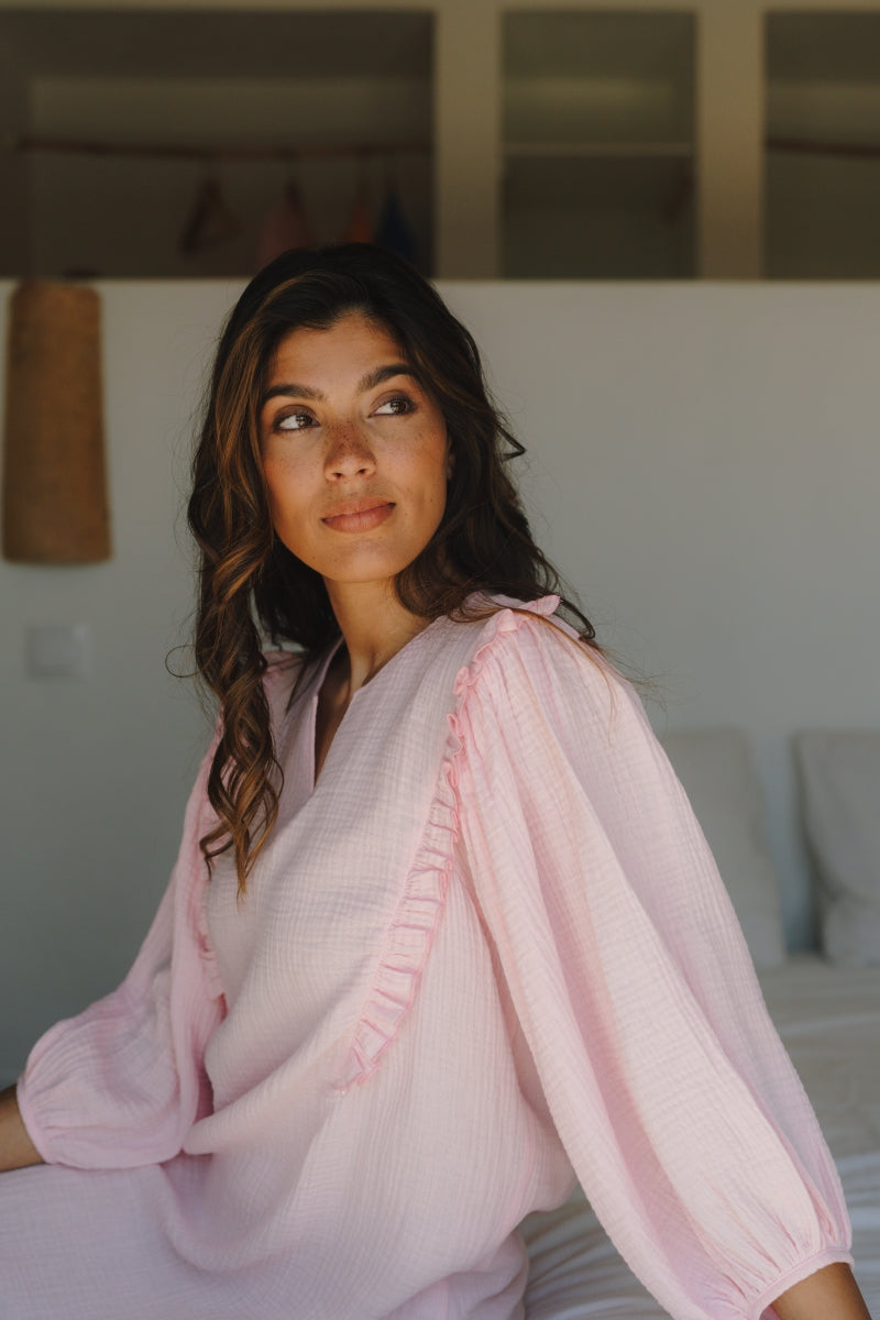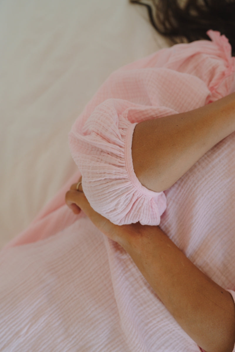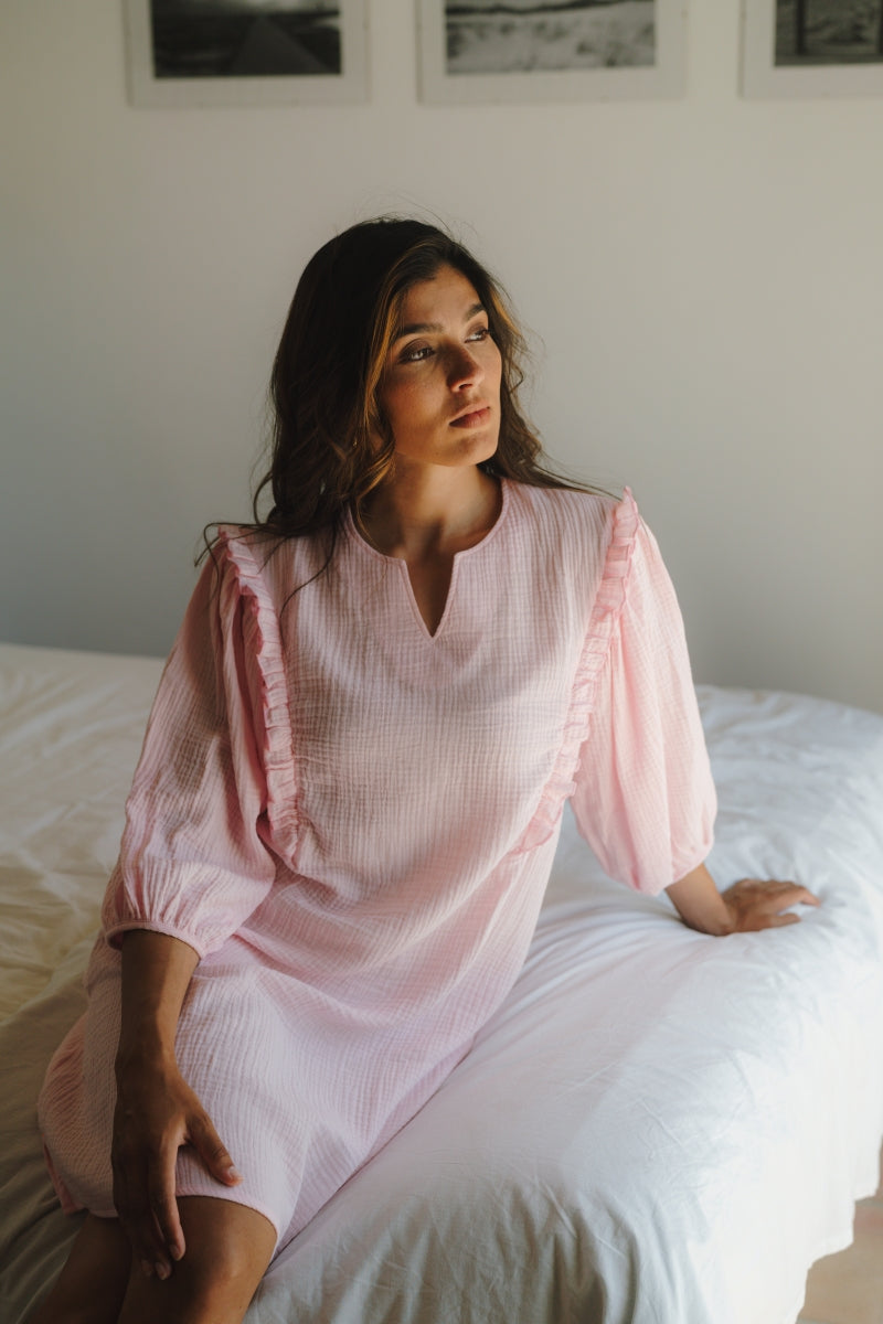 Mooie dames robe dido met3/4 opgepofte mouw in roze