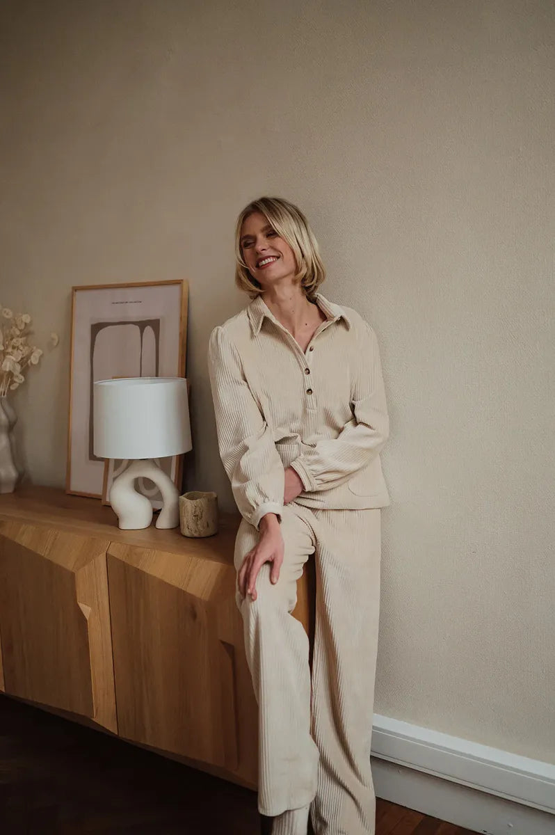 ALICE ET MAMAN DAMES HOMEWEAR gloria RIB VELOURS ECRU