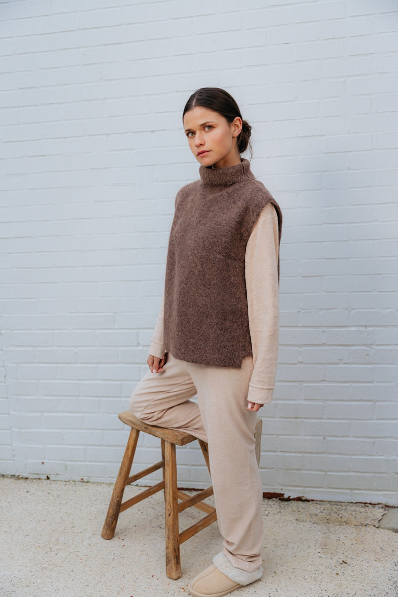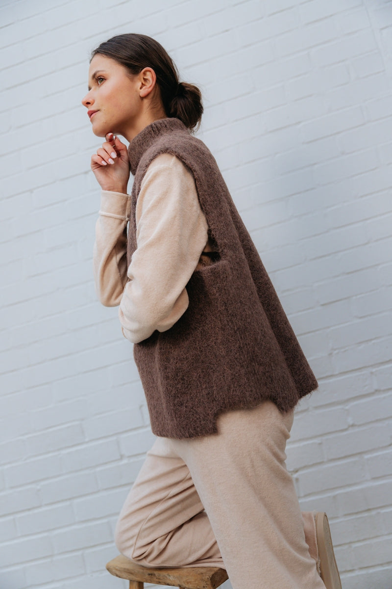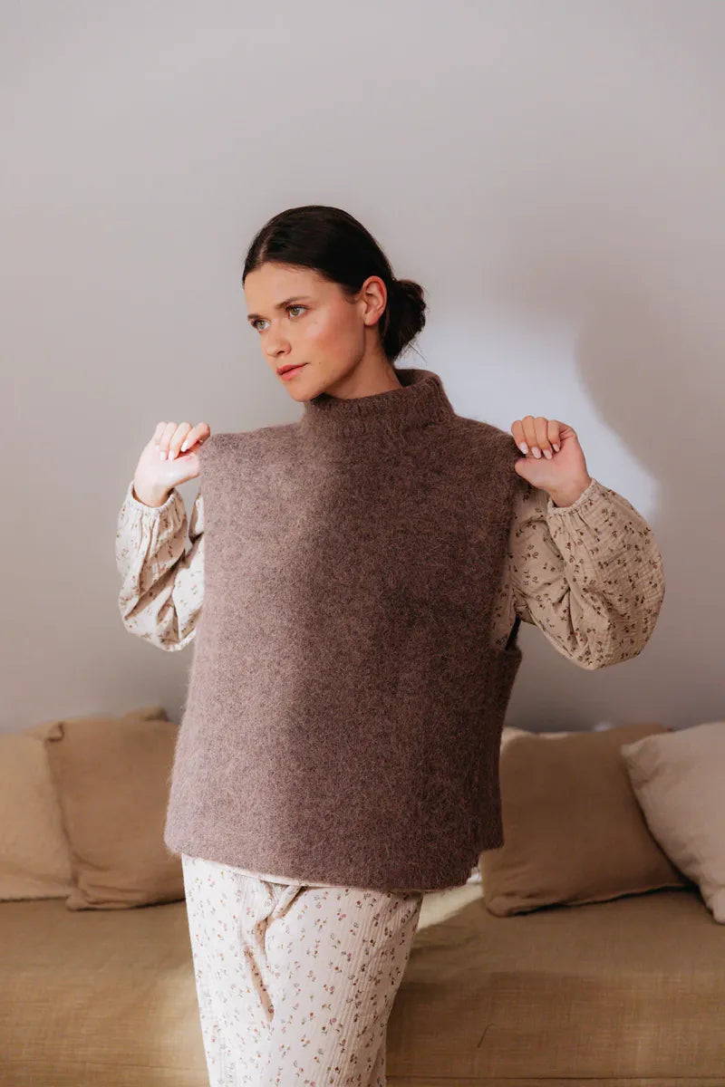 ontwerp: trechterhalslijn, mouwloos ontwerp en zachtste alpacamix