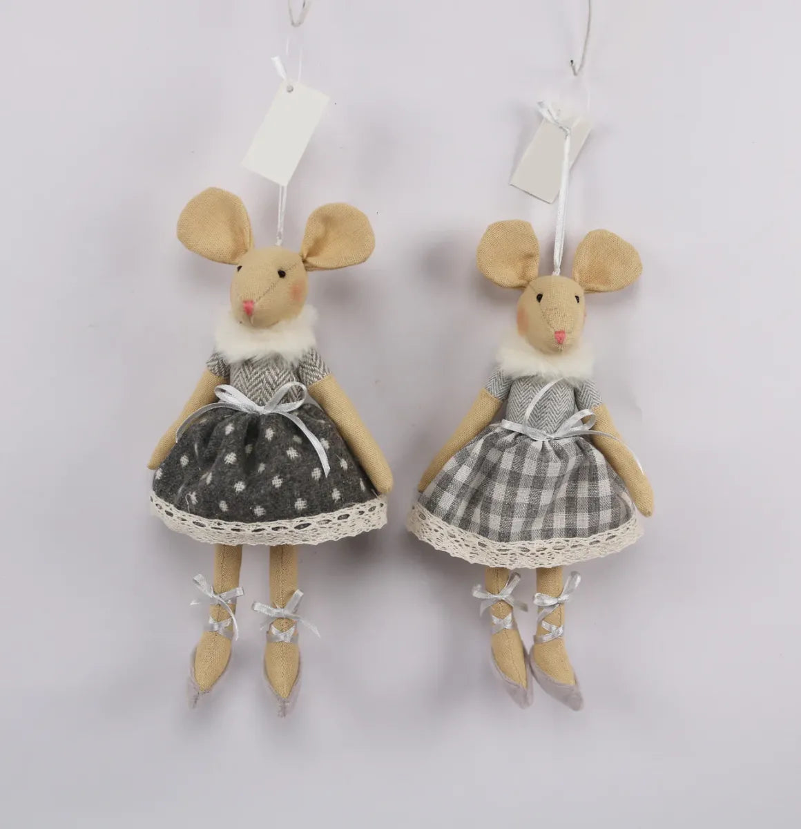 Ballerina Muis grijs met carreaux 24 cm hanger