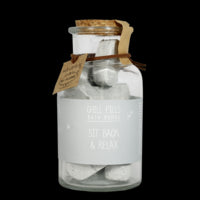 16 bruisballen, of eigenlijk chill pills in een glazen pot. Deze bruisballen lijken op een grote vitamine pil. Neem jouw welverdiende me-time en ontspan met deze heerlijke bruisballen. Laat 1, 2 of zelfs 3 pillen in het badwater vallen. De pillen zullen meteen gaan bruisen en oplossen in het water.