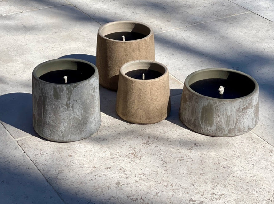 Stijlvolle Buitenkaars van 'Dekocandle'. De kaarsen worden ambachtelijk in België gemaakt en hebben het kwaliteitslabel HIB (Handmade In Belgium). Deze kaars is gevuld van een organische wax. Na het uitbranden van de kaars kan je de pot nog gebruiken voor bloemen in te planten.