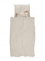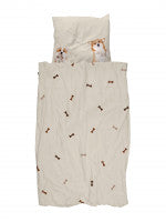Val met een grote glimlach in slaap tussen twee lieve hondjes die je dromen delen en bewaken. Samen met de beloningskoekjes print op het beige dekbedovertrek maak je van jouw slaapkamer een waar hondenparadijs.