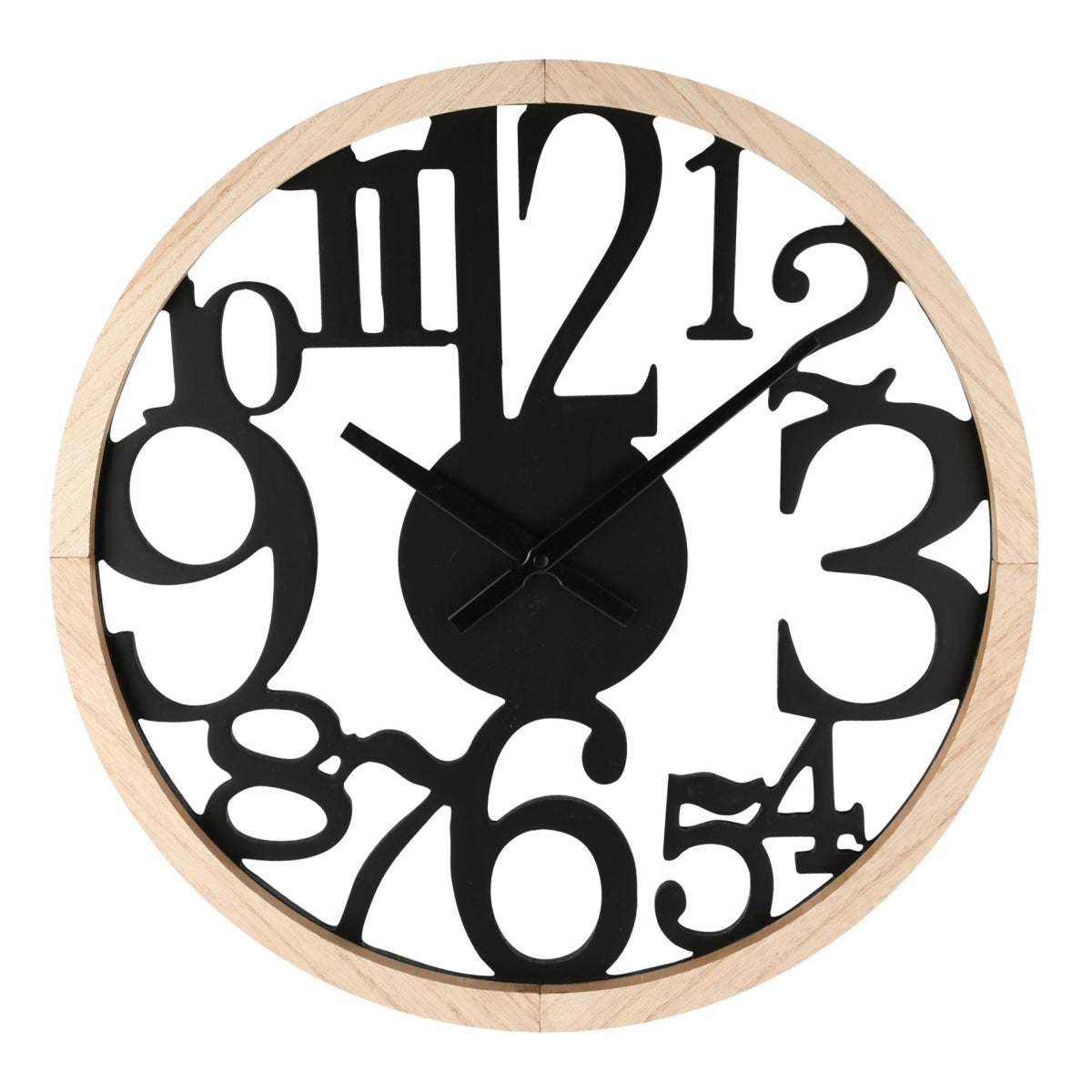 Dekoratief - Wandklok Rond zwart/naturel diameter 40 cm