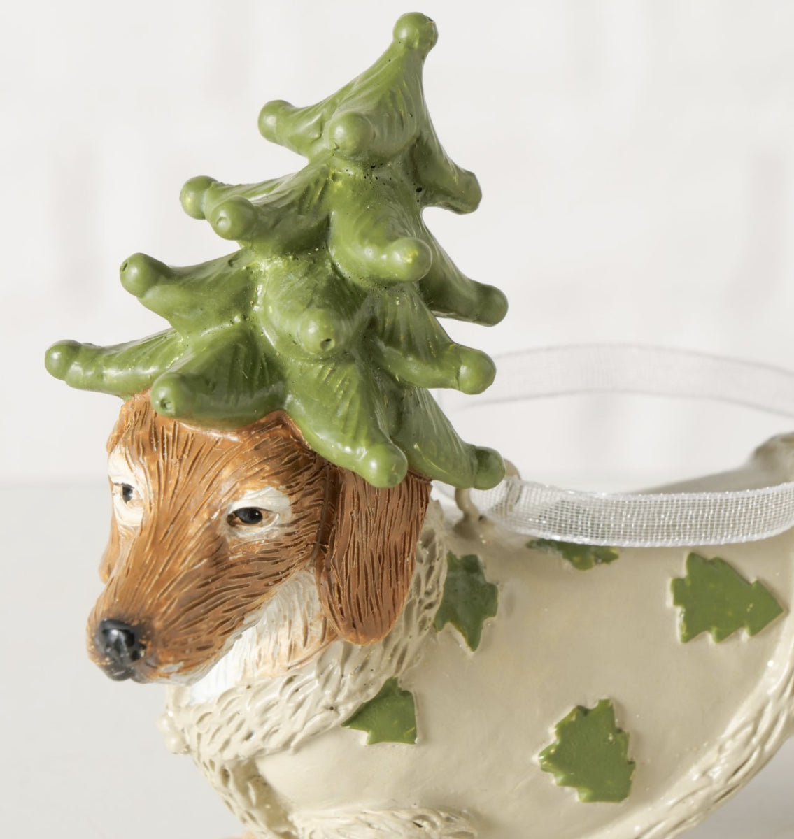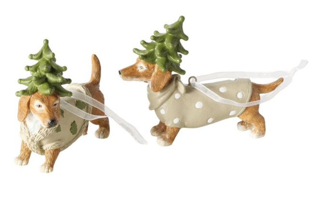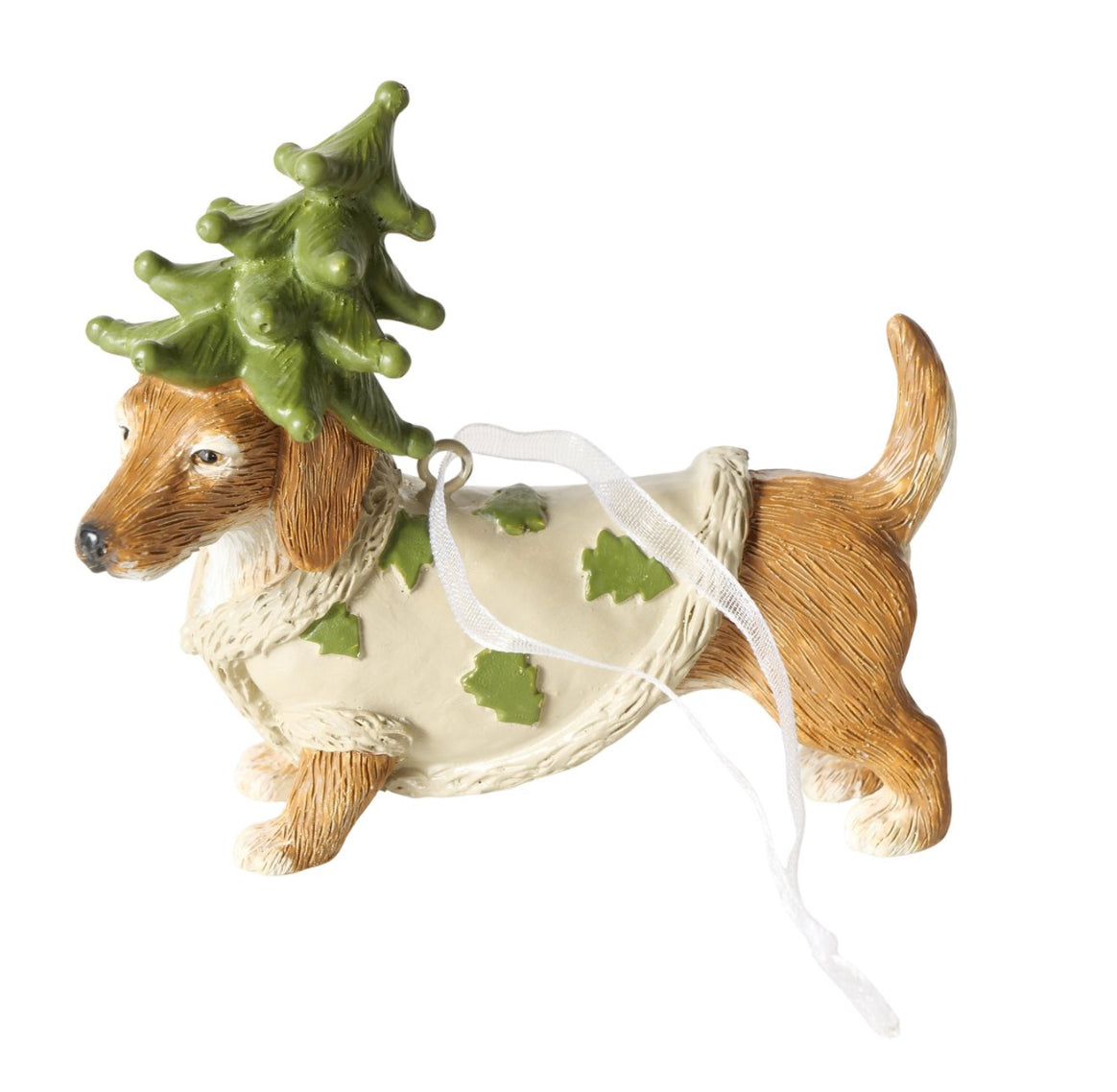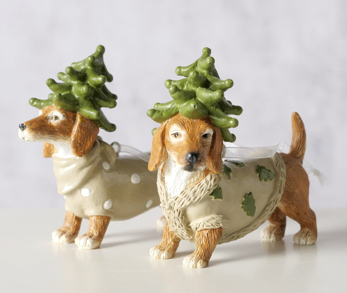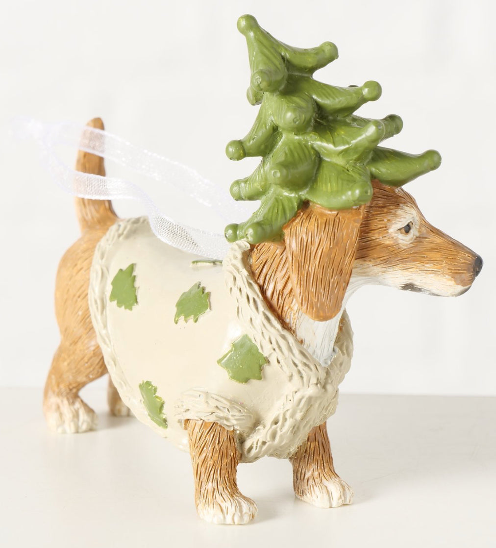 Hanger Kerst Teckel Xander H8 cm (2 designs stippen of kerstbomen, prijs per stuk)