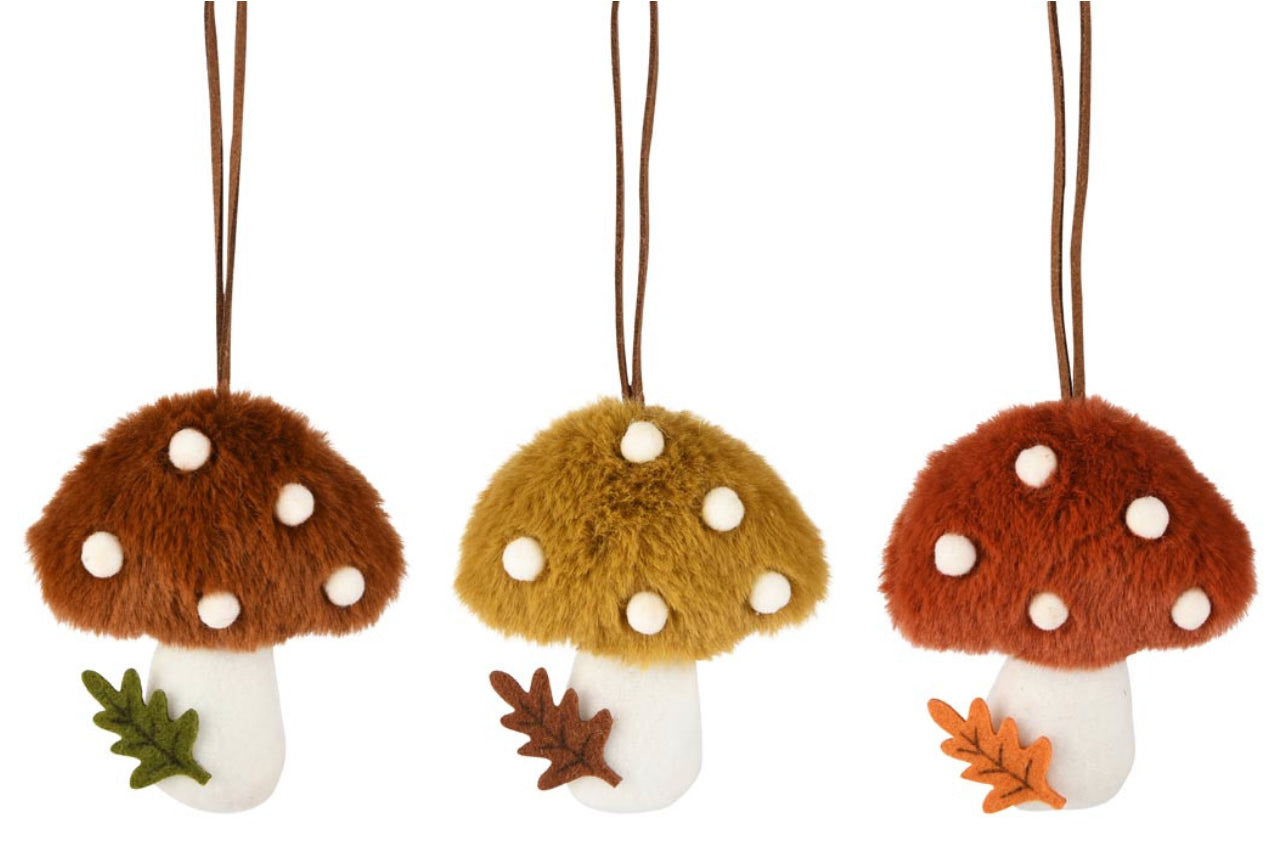 Hanger paddenstoel, 3 ass. oranje/okergeel/bruin, stof, 9x10x3cm