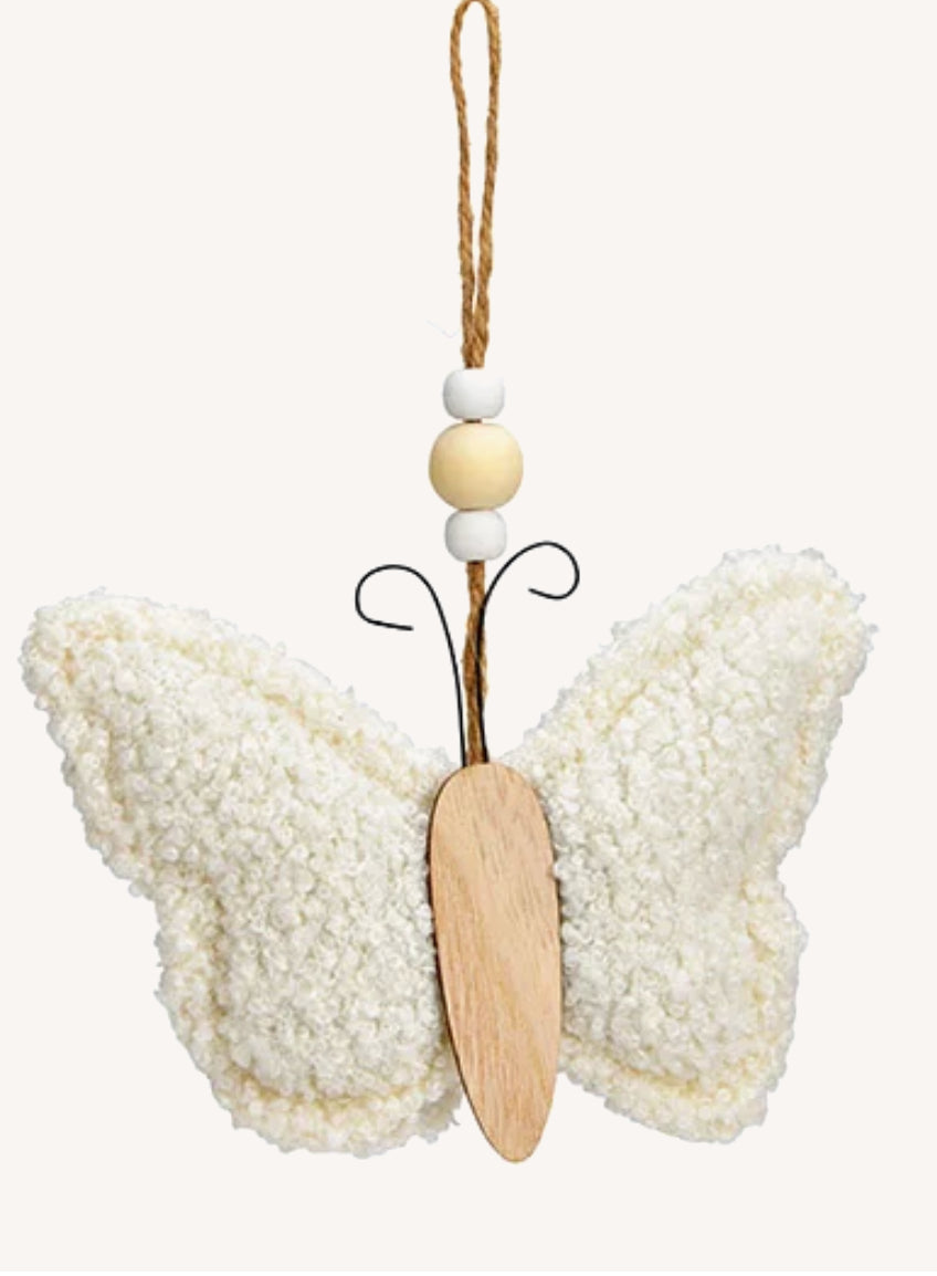 Hanger Vlinder Sherpa Wit 14x10x3cm