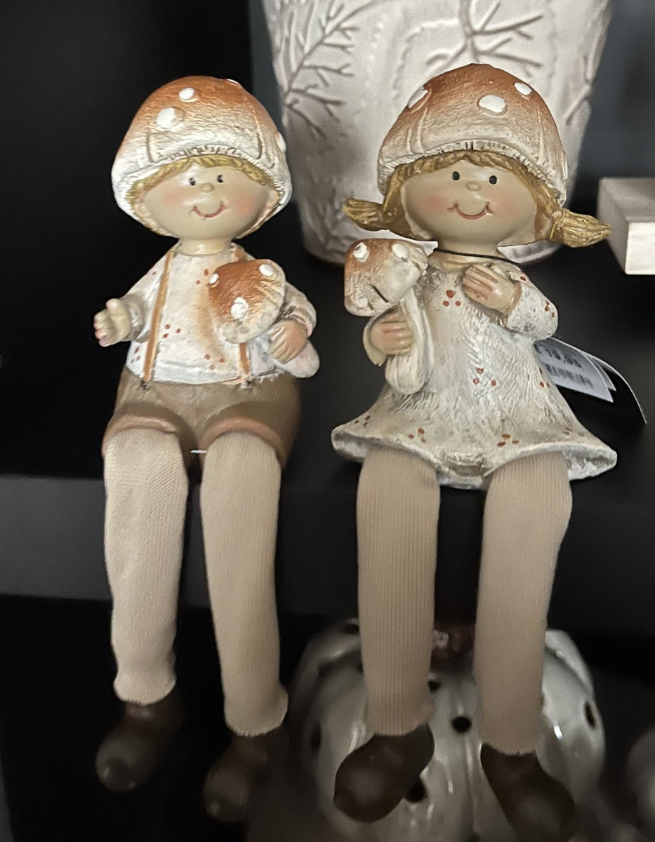 Herfstkindje m/hangbeentjes m/paddenstoel resina 6x5x17cm set 2 stuks