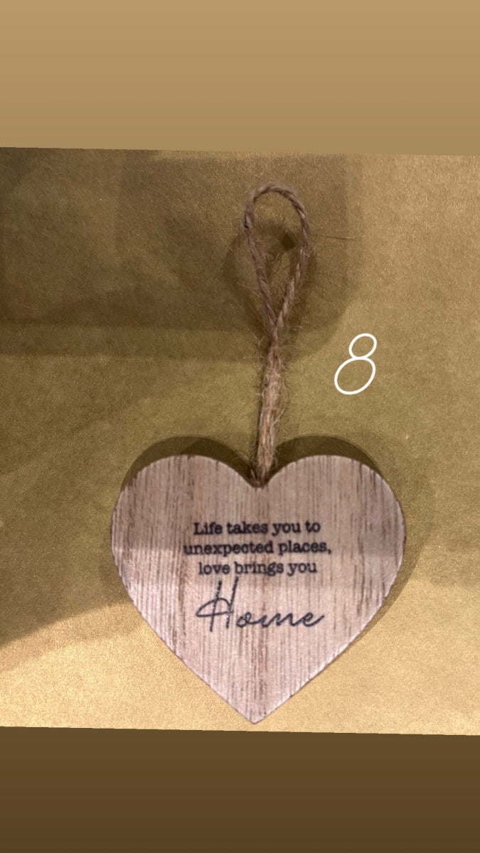 Op de hangende harten staan allemaal verschillende liefdes- en woonslogans, waardoor ze het ideale cadeau zijn voor een housewarming.