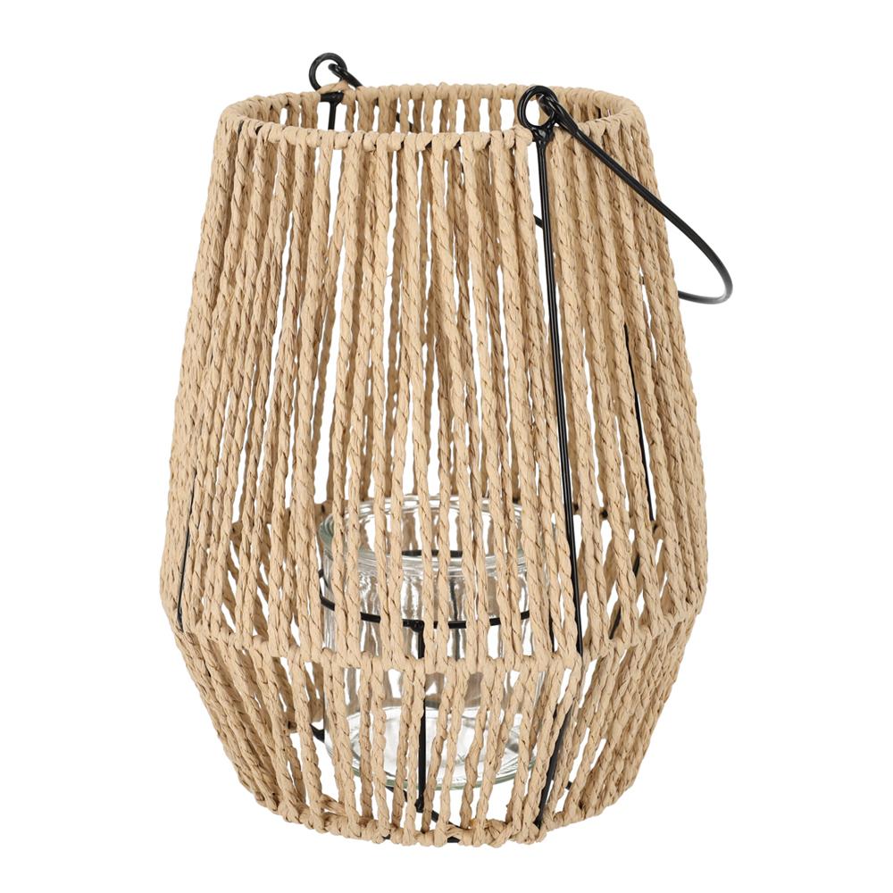 Met deze lantaarn wordt iedere (overdekte) plek in of rondom huis sfeervol. De lantaarn heeft een basis van metaal en is op een stijlvolle manier aangekleed met papier. Binnenin de lantaarn zit een glazen houder voor een theelicht of stompkaars. Door het handvat aan de bovenzijde is de lantaarn eenvoudig te verplaatsen.