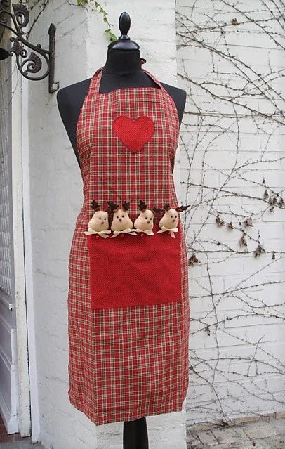 Keukenschort bordeau geruit/ met elandjes in zak - LARGE