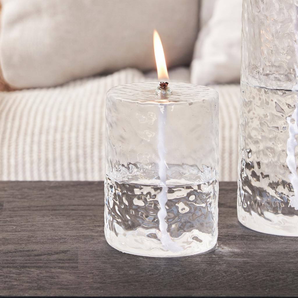 Verlicht je huis met de prachtige olielampen (met gehamerd effect) van Leeff. Combineer de verschillende vormen om een mooie, gezellige sfeer te creëren. De olielamp is gemaakt van mondgeblazen borosilicaatglas en heeft een katoenen lont. We hebben een kleine trechter toegevoegd om gemakkelijk lampolie in de olielamp bij te vullen en morsen te voorkomen. Lees voor gebruik de instructies op de onderkant van de verpakking. Geniet in elk seizoen van het jaar van de gezelligheid van de olielampen.