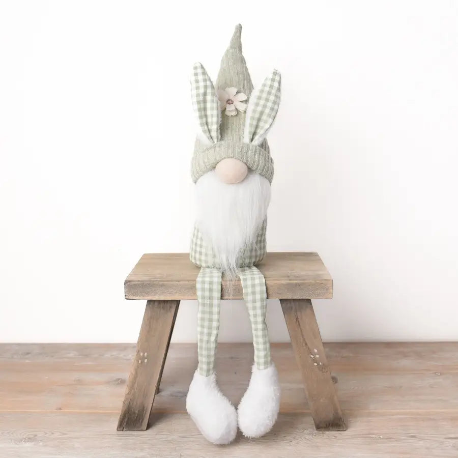 een mooie en unieke gonk shelf sitter in lentethema. Gemaakt van charmante ginghamstof in een mooie pastelgroene tint.