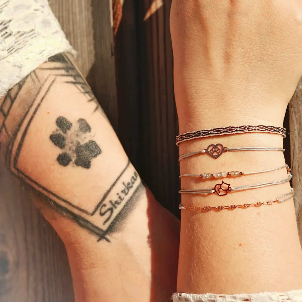 Armband voor pootenliefhebbers. (Prijs per stuk) De armbanden worden geleverd op een prachtige cadeaukaart die past bij het ontwerp. Motieven: kat, poot, kattenkop, kattenpoot, hond, hartpoot Fijne armbanden van sterling zilver, de uiteinden van de band zijn gemaakt van sterling zilver. Verstelbaar met twee schuifknopen en past op elke pols.