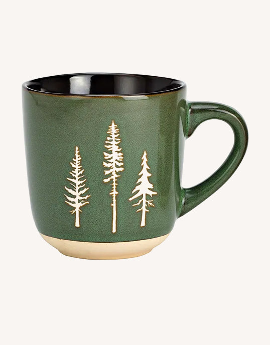 Mok hert, winter bosdecor, gemaakt van steen, kleur groen(B/H/D) 13x10x9cm 420ml