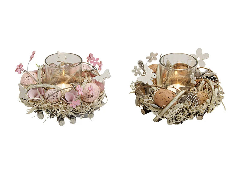 Paaskrans met lantaarn en roze eieren, B10 x H15 cm