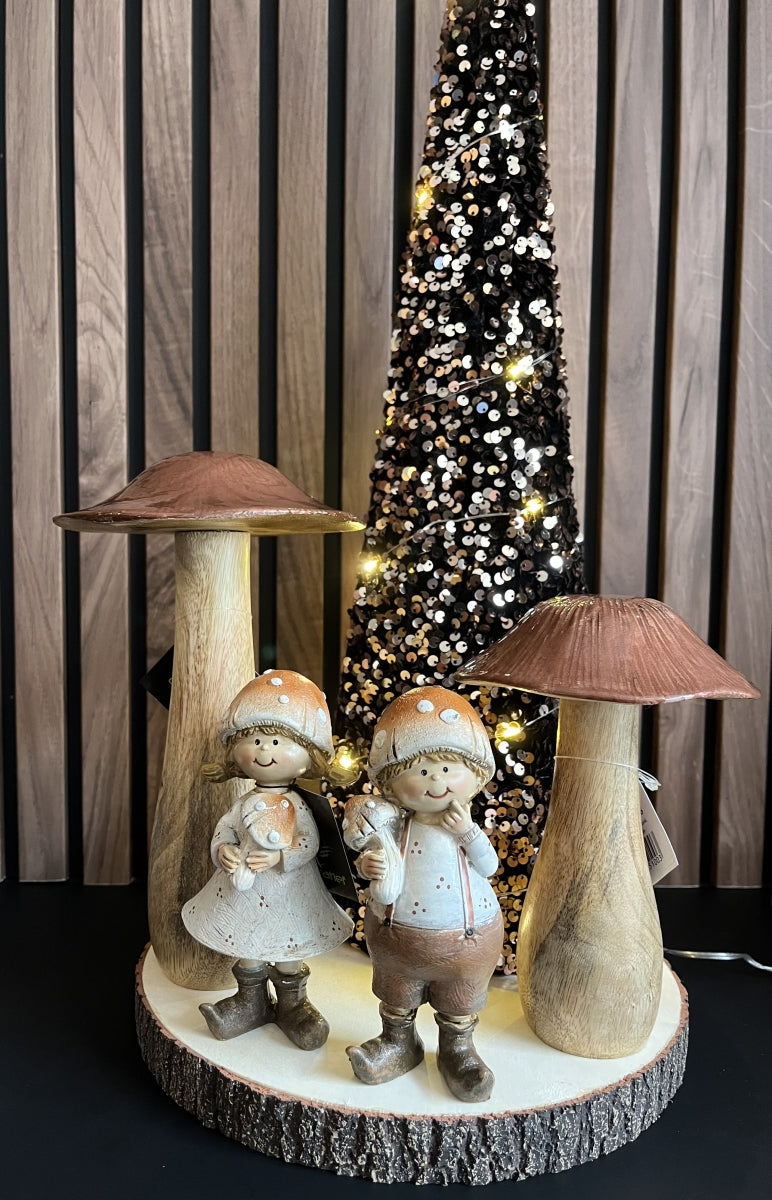 Paddenstoel bruin/naturel hout 14x14x22cm