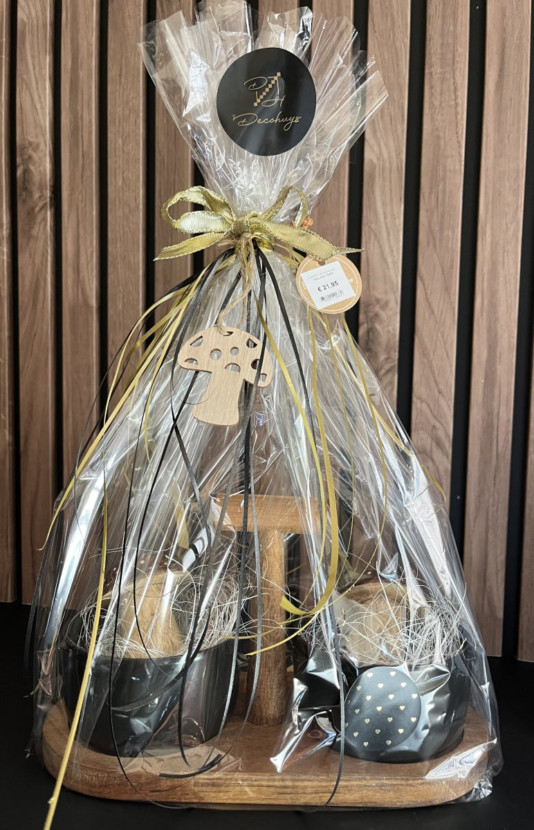 Herfstpakket bestaande uit serveerset zwart - 2 paddestoelen H7 cm