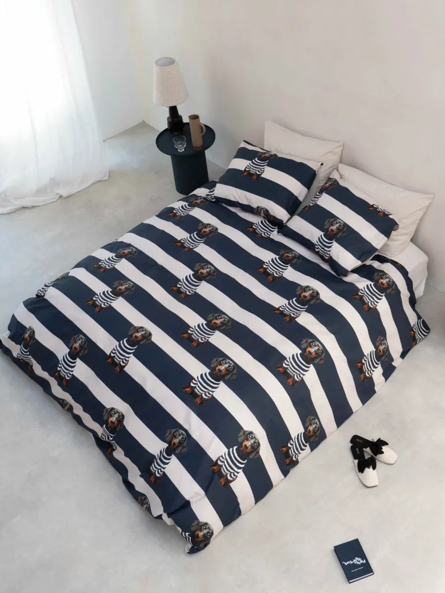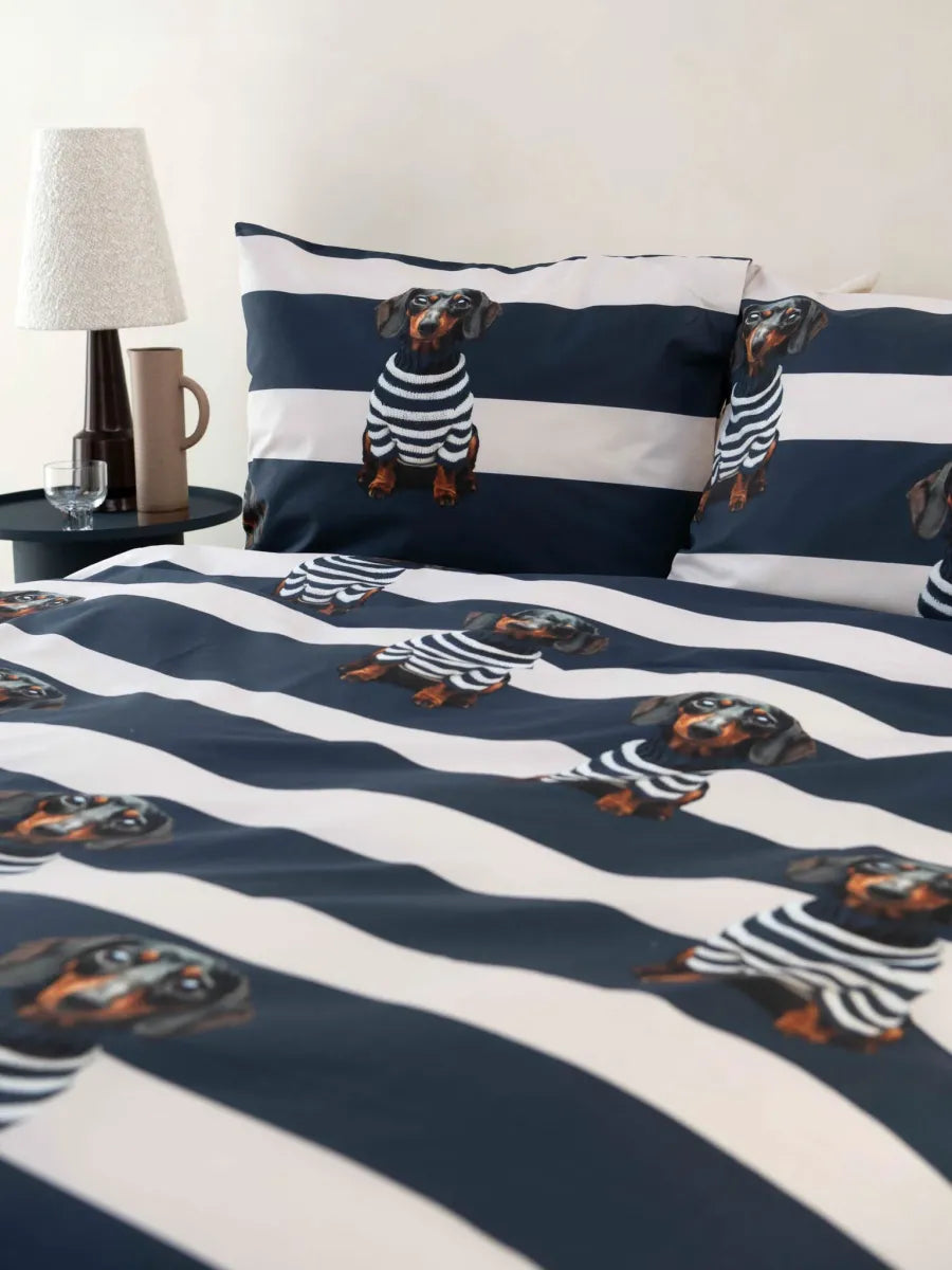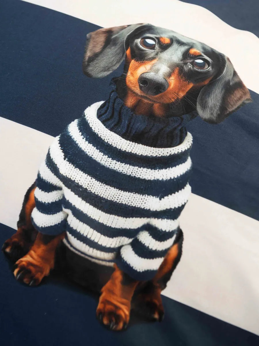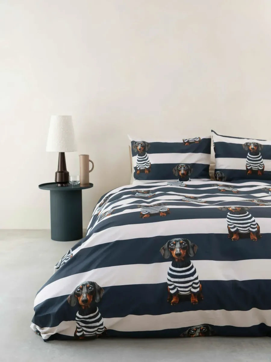 Elke avond ligt hij trouw op je te wachten: Pierre, onze stijlvolle teckel in z’n klassieke Bretonse trui. Of je nu behoefte hebt aan een knuffel, een lui weekend of gewoon een stijlvolle nacht: Pierre is er voor je. Altijd in voor een goed dutje, liefst samen. Gemaakt van zacht biologisch katoen.