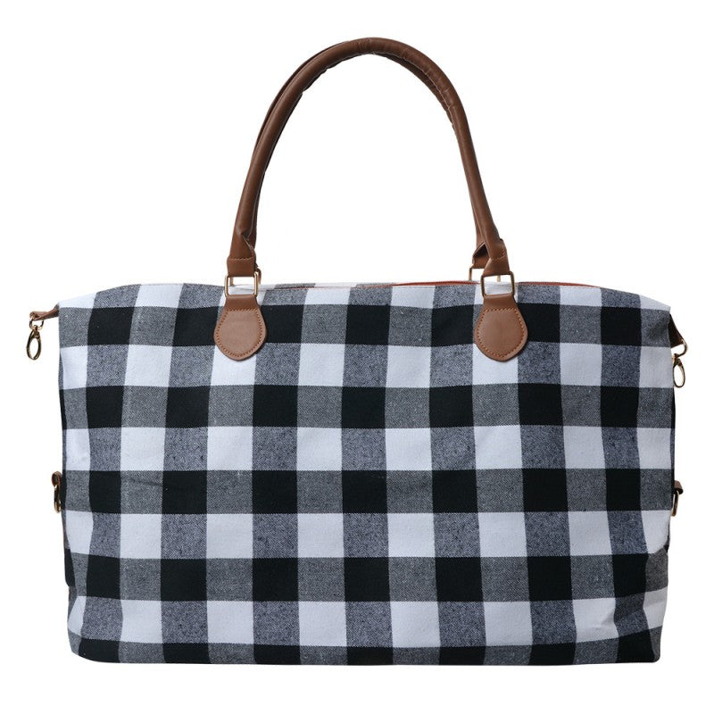 Ruime wit en zwarte duffle tas, ideaal voor op reis. Handig om met de hand te dragen of over de schouder. Met compartimenten aan de binnenkant, zodat alles zijn eigen plek heeft.