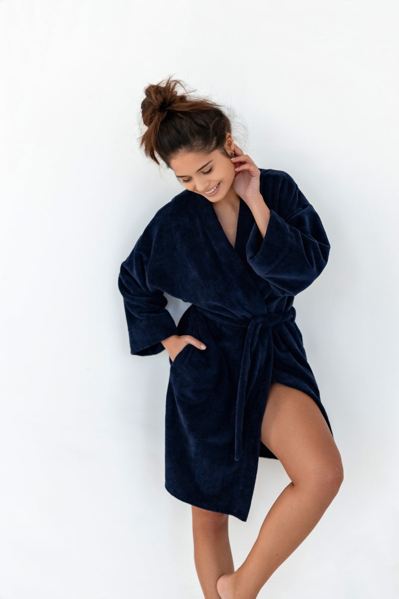 Elegante damesbadjas van hoogwaardige materiaal, katoen en bamboo.