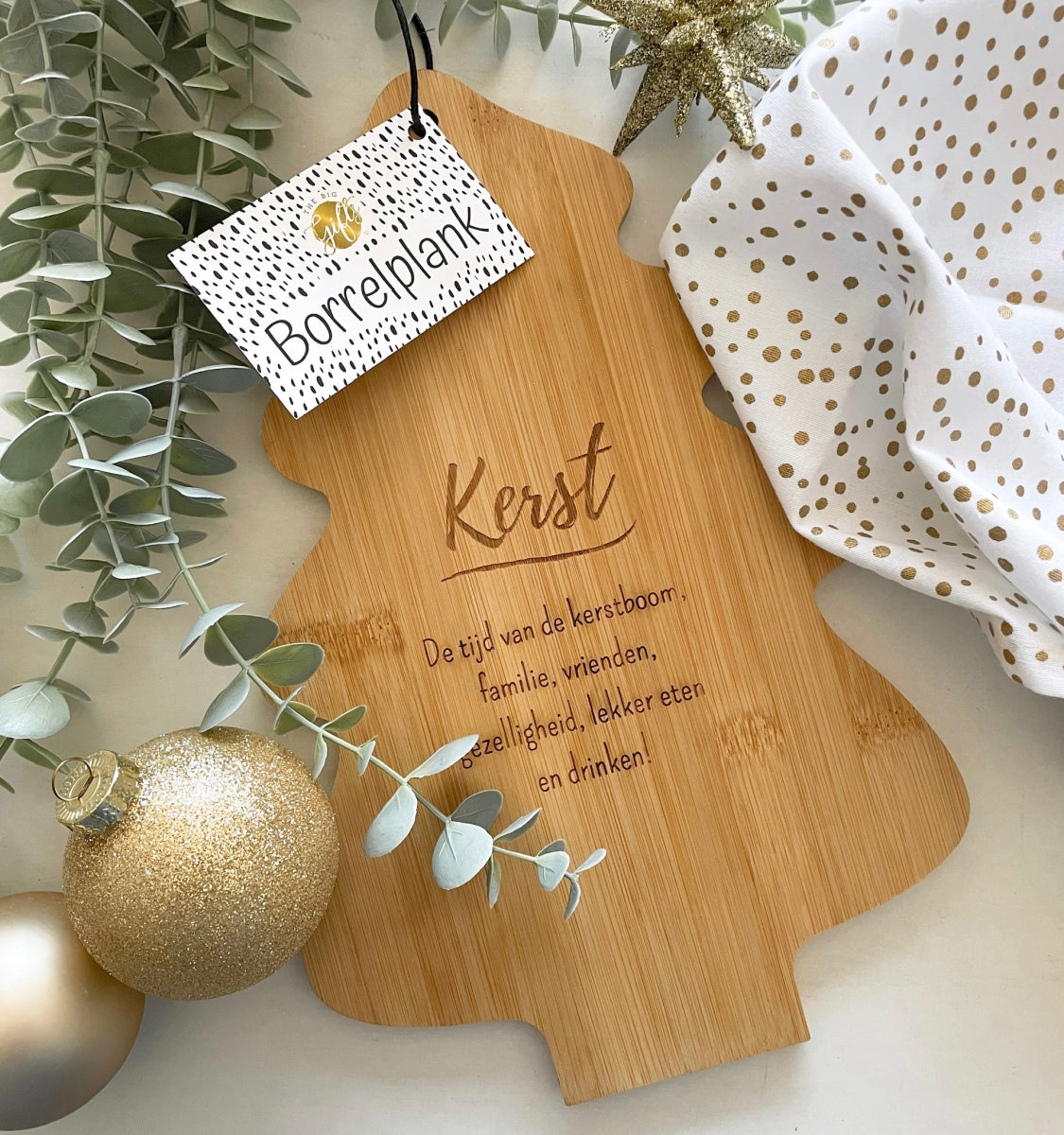 Tot slot is het goed om te weten dat de Serveerplank – Kerst van rubberwood foodsafe is. Dit betekent dat je zonder zorgen voedsel op de plank kunt snijden. Bovendien is het hout bestand tegen sterke en scherpe messen, waardoor de plank niet snel zal splinteren, schilferen of vervormen. Kortom, met een beetje liefde en aandacht gaat je rubberwood borrelplank jarenlang mee.