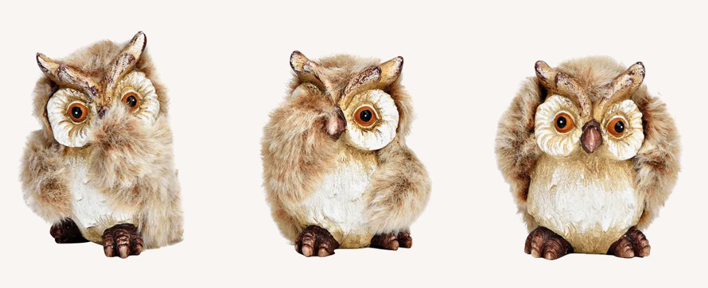 Uil imitatiebont van polybruin set van 3/ 6x7x5cm