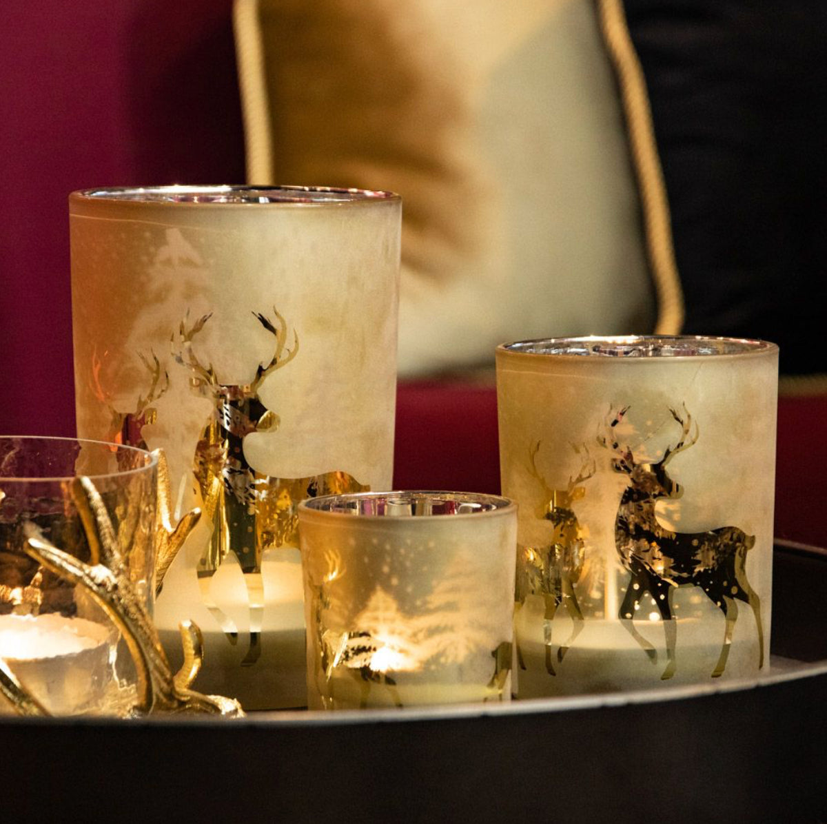 Windlicht Silhouette Dansend hert goud Large 18 cm